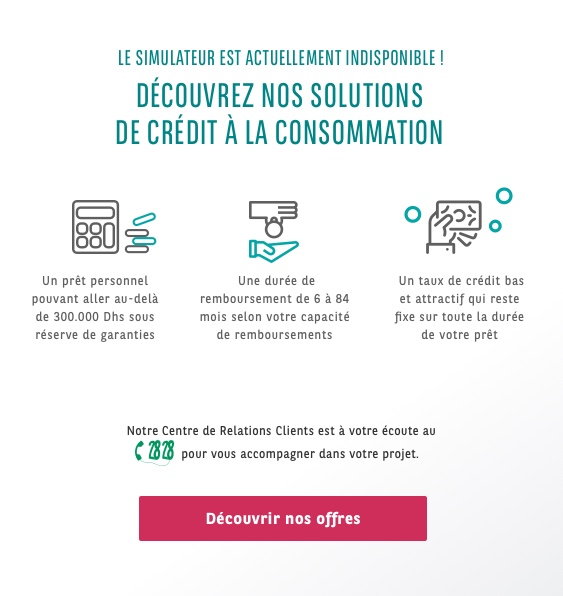 Concrétisez votre projet à hauteur de 20 Dhs par jour. Demandez votre crédit conso au 2828